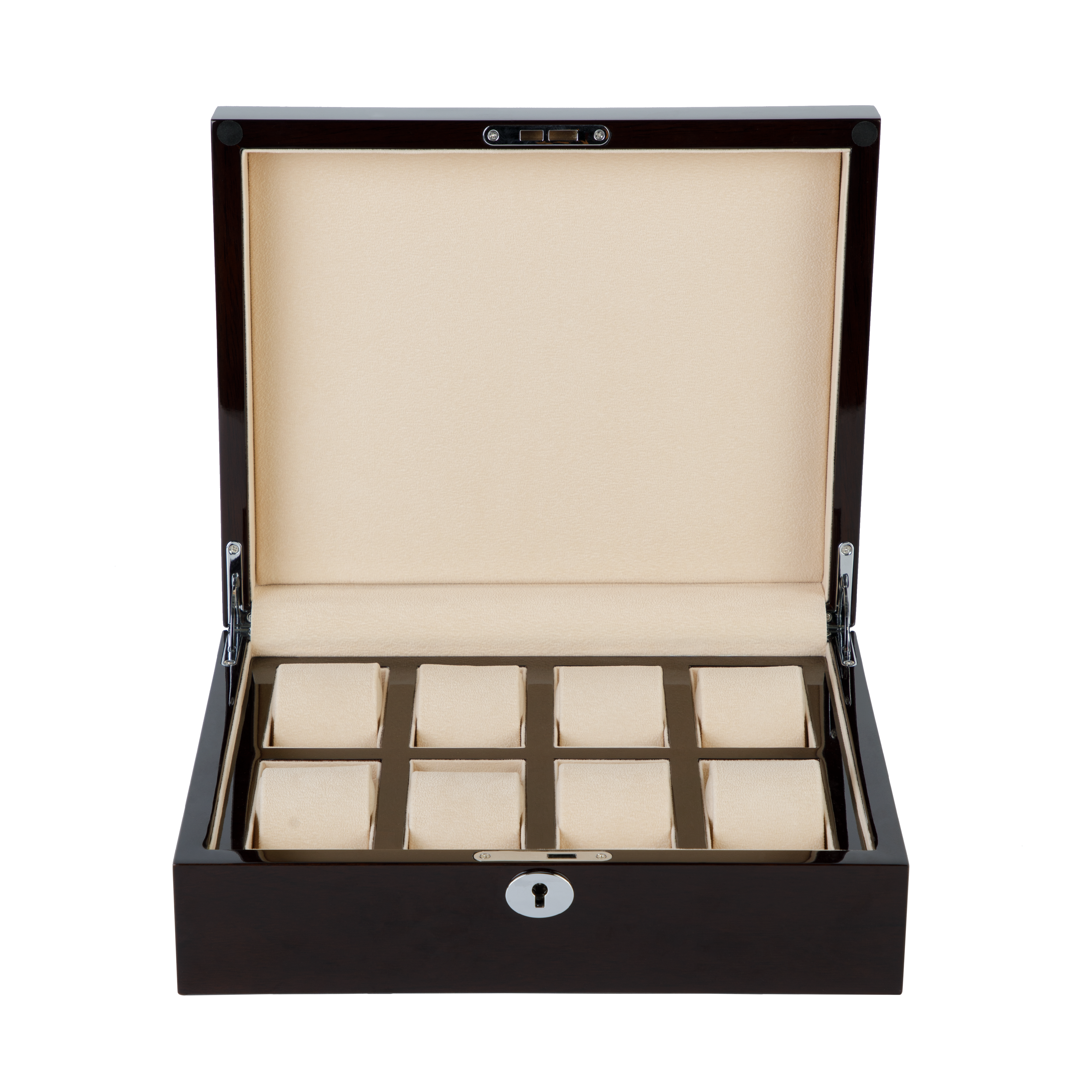The Dome is solid and substantial, built with a solid-wooden covering, it ensures that the collectors watches are preserved in an optimum environment. Featuring velvet skirting and flush hinges, the Dome has been refined with every detail in mind. Fitted with belted cushions it offers usability across a large range of wrist sizes.