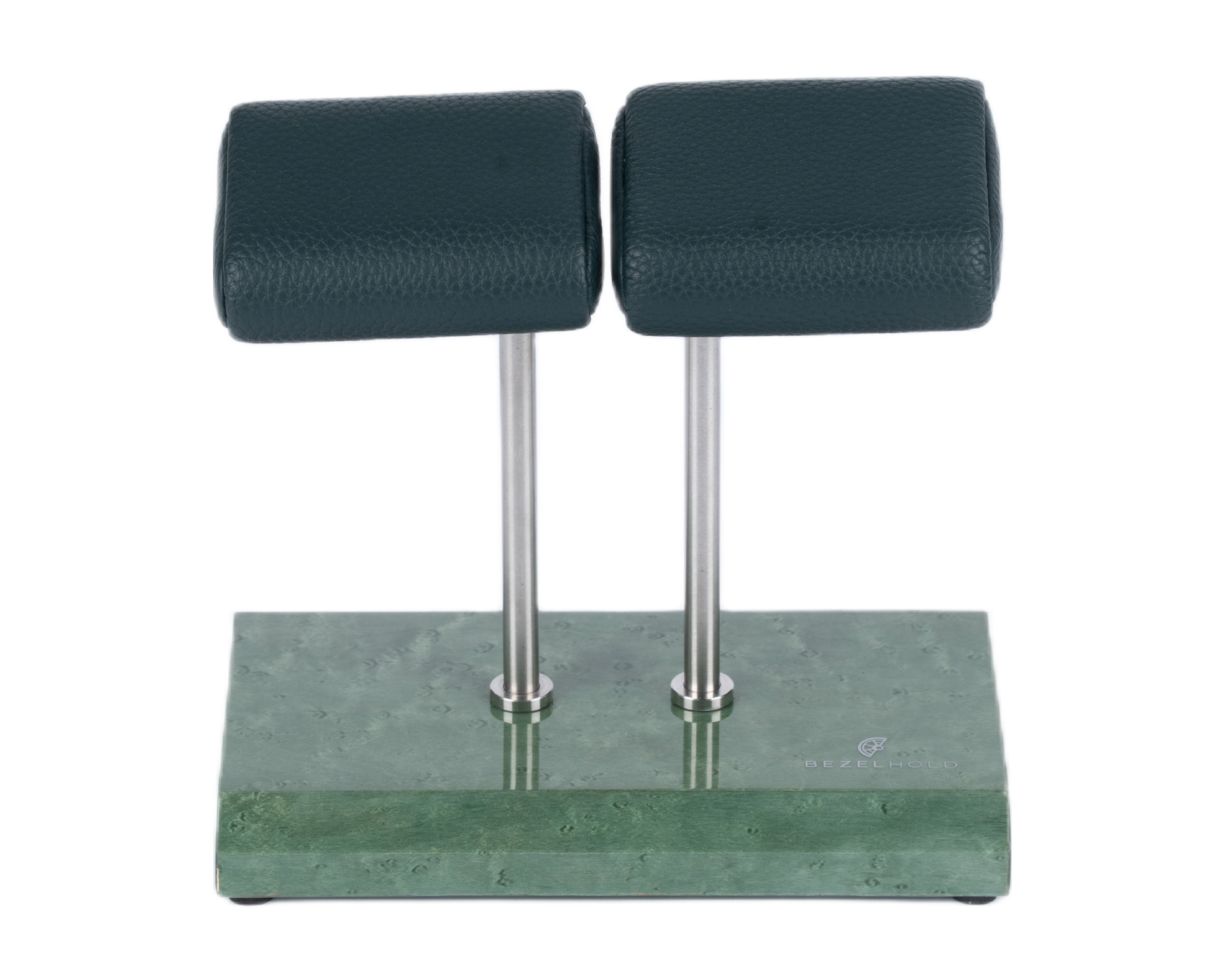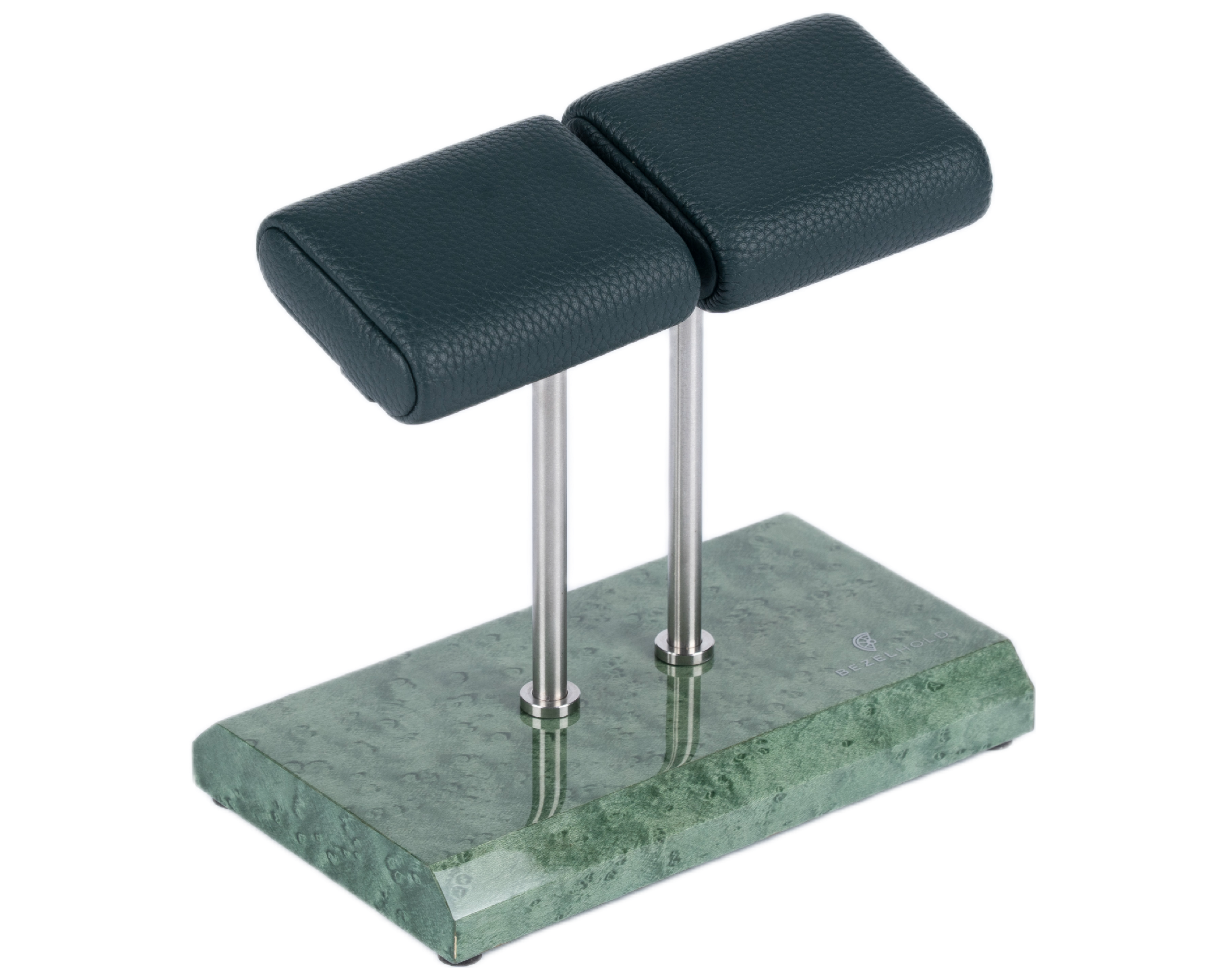 A beautiful canvas for the collector, The Duet is designed to display and protect your watches. With each detail thoughtfully refined, it truly is one of the most desirable accessories for enthusiasts. It features pebble grain leather pillows sourced from the finest tanneries, a high-gloss polished base, and matte silver stands.