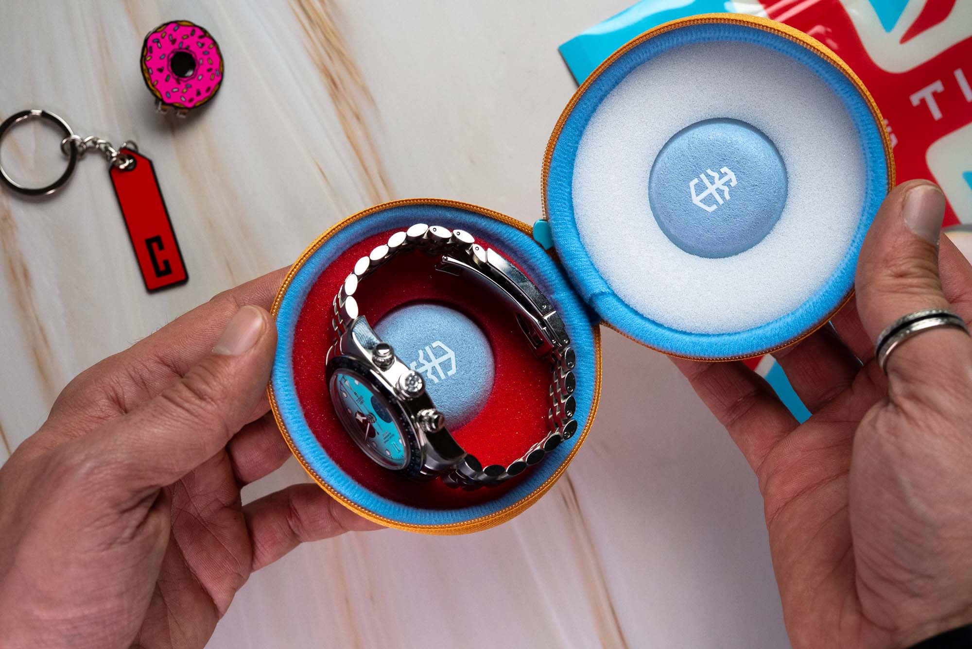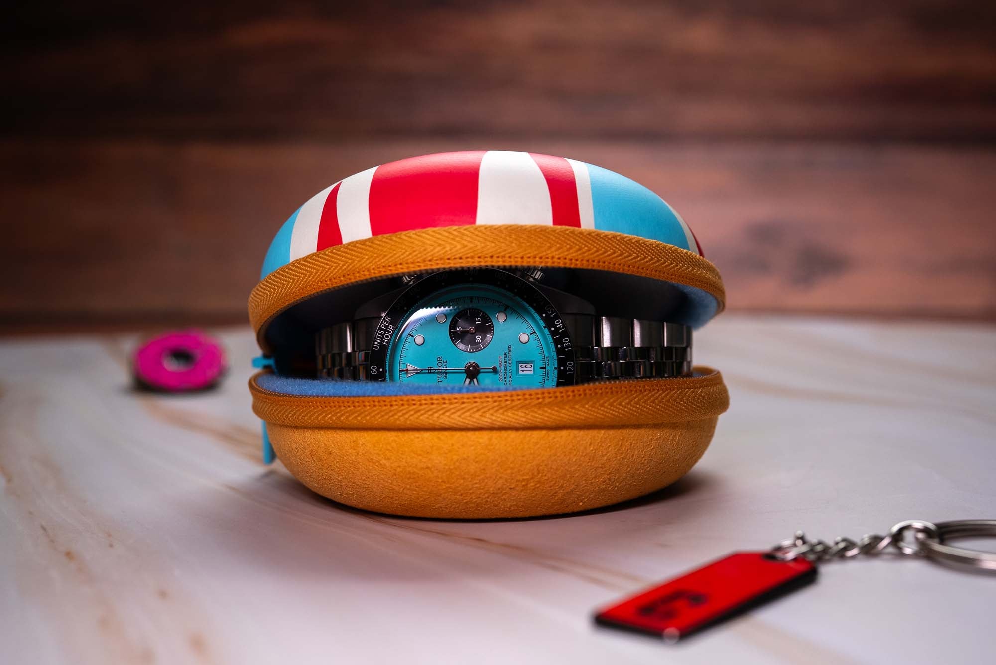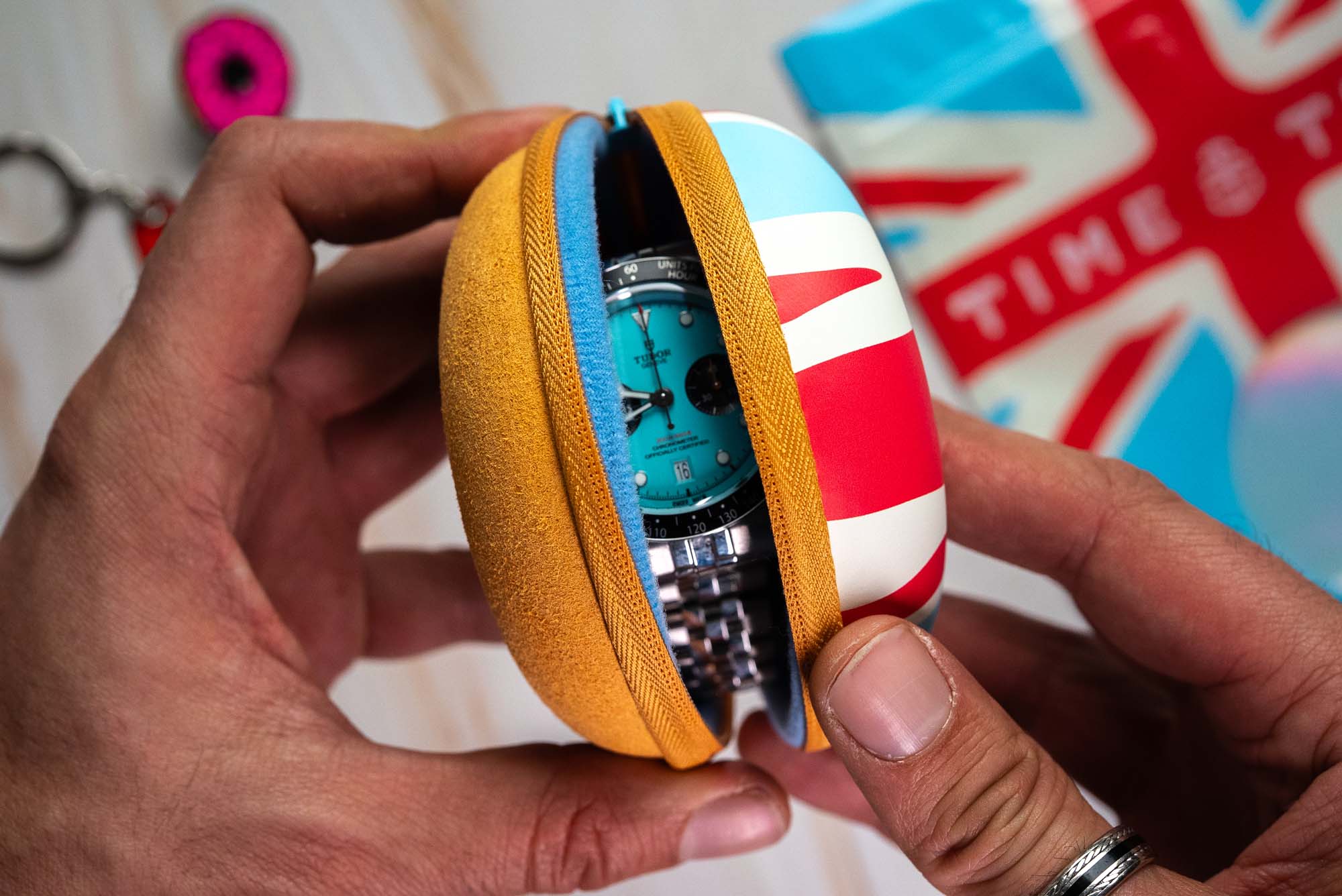 Serious protection, unmistakably British. The iconic Donut Watch Case gets a patriotic twist with the Union Jack Edition, created especially for our British Watchmakers’ Weekender. Same durable hard-shell exterior and plush interior you love—now iced with the bold red, white, and blue of the Union Jack. Compact, lightweight, and perfect for travel or display, it keeps your watch safe while turning heads wherever it goes. Because your watch—and its case—deserve to stand out. Available exclusively at Time+Tide for a limited time. 🇬🇧🍩