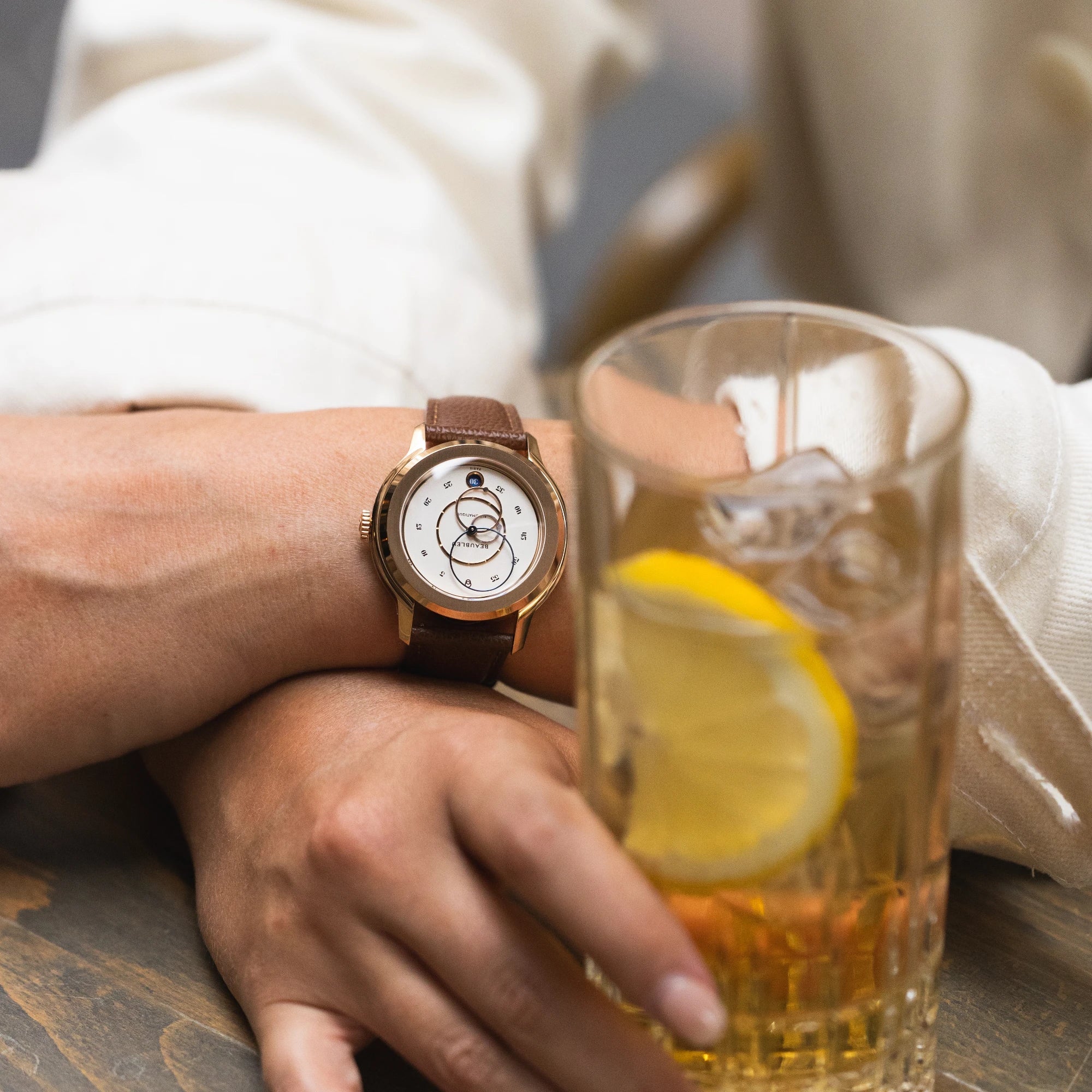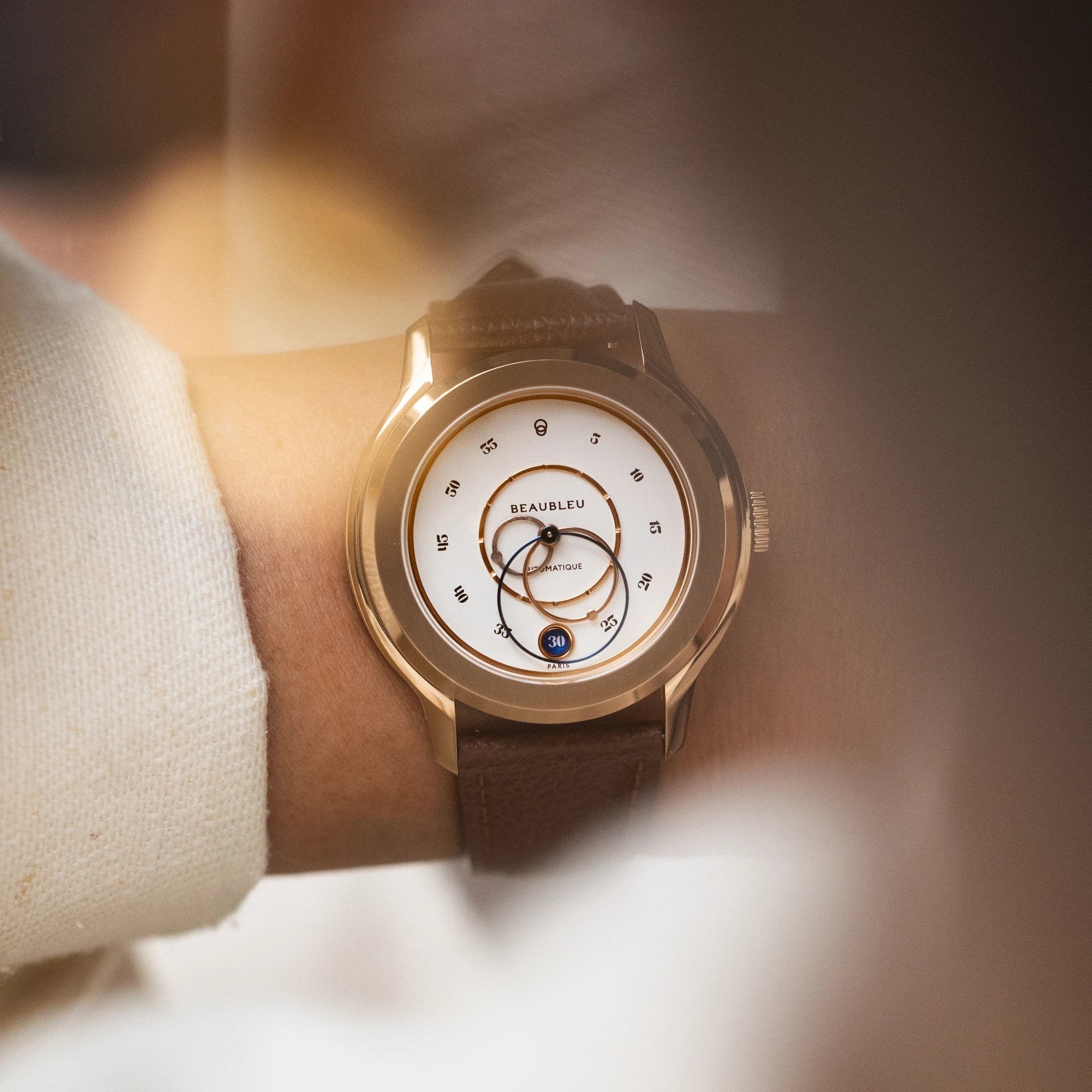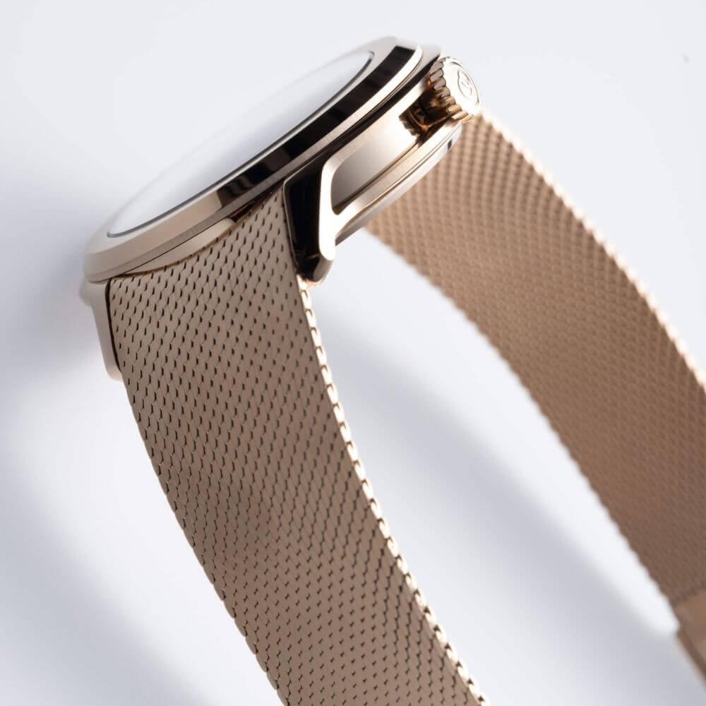 A true meeting between retro charm and contemporary elegance, The Ecce Lys is distinguished by warm tones and a dial rich in contrast. This set results in a captivating watch with undeniable flair.