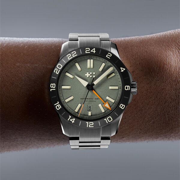 Whatever your mission, you can rely on the C63 Sealander Extreme GMT to appeal to the inner 007 in all of us. Featuring indexes and hands sculpted in Globolight® luminous ceramic that delivers high-visibility timekeeping after dark. Plus, GMT functionality courtesy of the Sellita SW330-2 movement – protected by an ingenious anti-shock system. With a textured matte dial, sandblasted ceramic bezel and a 41mm brushed steel case, the C63 Extreme GMT is the ultimate go-anywhere companion. Available on our new action-ready Cordura® V-Strap or classic Bader bracelet.