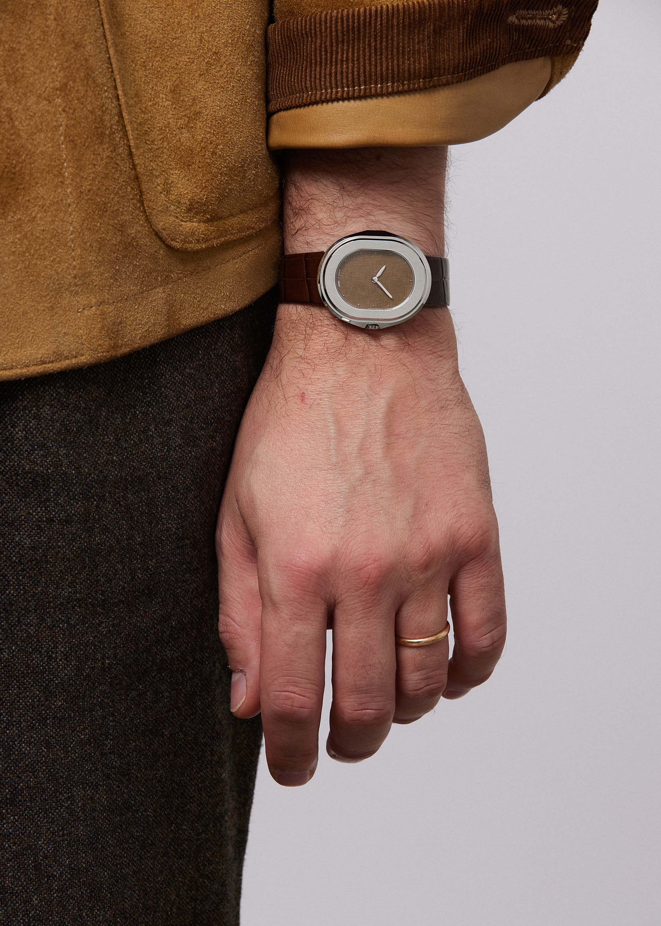 Powered by the Swiss automatic M100 movement, the 'Parade' is water-resistant to 100 meters, achieved through a robust “sandwich” case construction that secures the bezel while increasing the compression of the seals. Its minimalist two-hand layout focuses solely on hours and minutes, offering a refined approach to timekeeping.