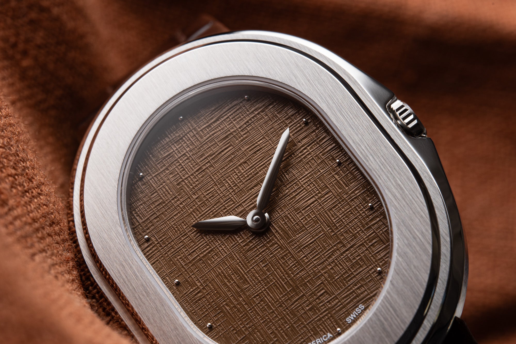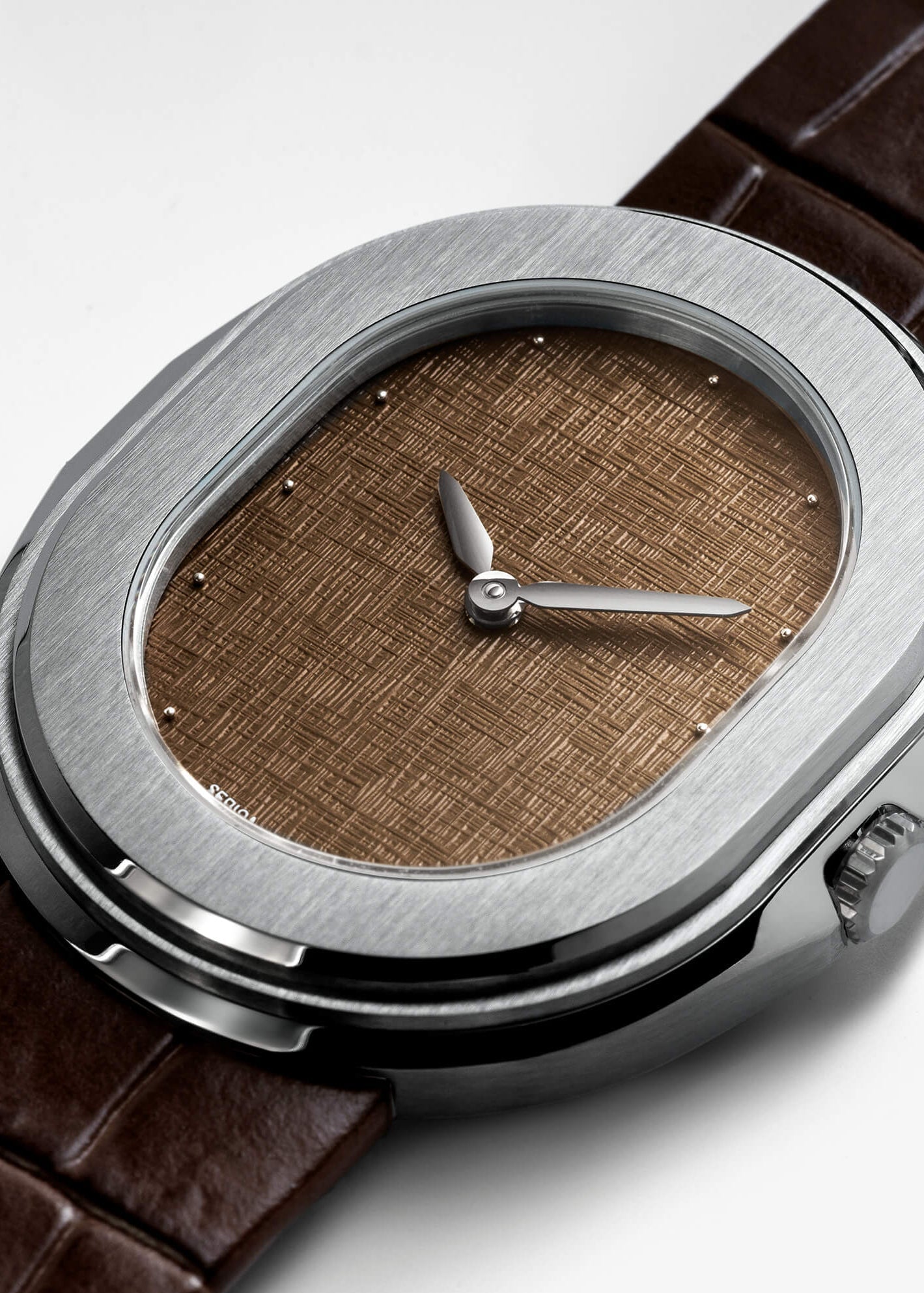 Finish: Textured dial reproducing the interwoven fibers of linen