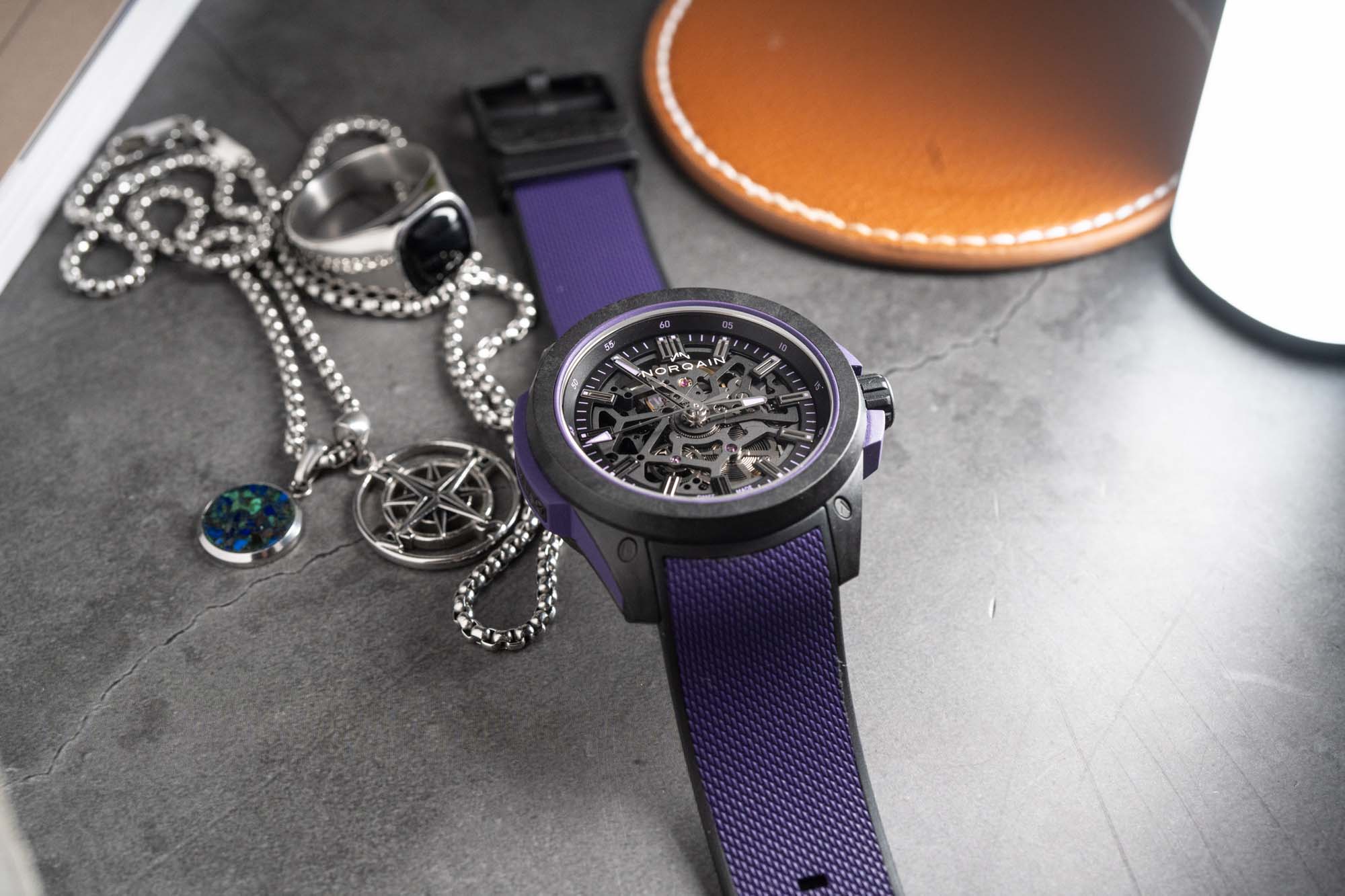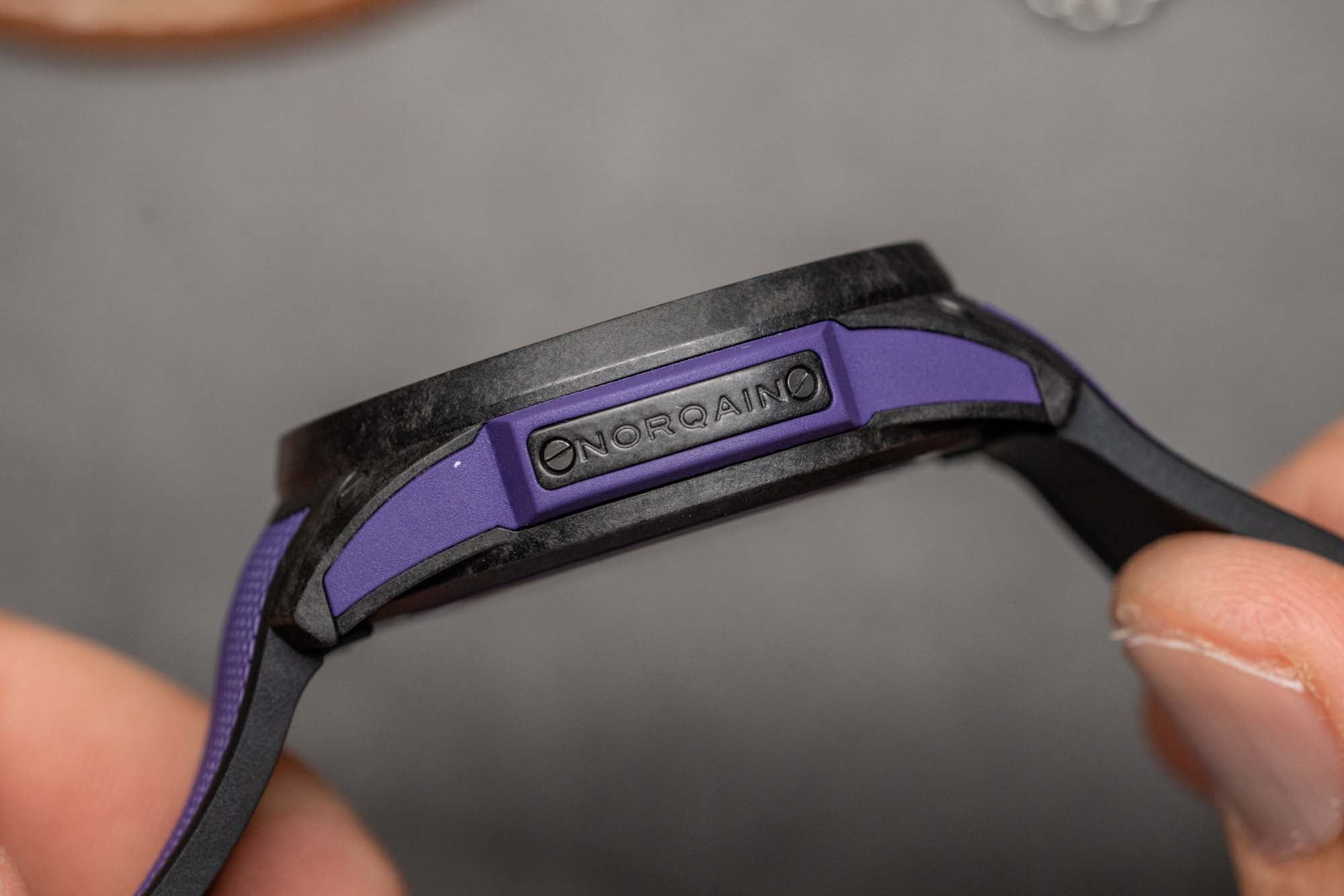 Beneath the purple accents, the skeletonised dial reveals the open-worked Calibre NB08S. Finished in ruthenium black, this COSC-certified automatic movement delivers chronometer precision and a 41-hour power reserve. A personalised NORQAIN oscillating weight gleams through the sapphire case back, where the purple-printed “Limited Edition – One of 400” underlines its rarity.